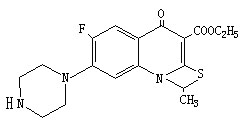 6-fluoro-1-methyl-4-oxo-7-(1-piperazinyl)-4H-[1,3]thiazeto[3,2-a]-3-quinoline carboxylic acid |