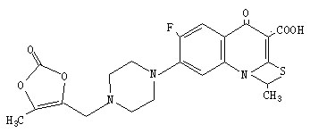 (+/-)-7-{4-[(z)-2,3-dihydroxy-2-butenyl]-1-piperazinyl}-6-fluoro-1-methyl-4-oxo-1h,4h-[1,3]thiazeto[3,2-a]quinoline-3-carboxylic acid cyclic carbonate; 6-fluoro-1-methyl-7-(4-(5-methyl-2-oxo-1,3-dioxelen-4-yl)methyl-1-piperazinyl)-4-oxo-4h-(1,3)thiazeto(3,2-a)quinoline-3-carboxylic acid; 6-fluoro-1-methyl-7-{4-[(5-methyl-2-oxo-1,3-dioxol-4-yl)methyl]piperazin-1-yl}-4-oxo-4H-[1,3]thiazeto[3,2-a]quinoline-3-carboxylic acid; (1R)-6-fluoro-1-methyl-7-{4-[(5-methyl-2-oxo-1,3-dioxol-4-yl)methyl]piperazin-1-yl}-4-oxo-4H-[1,3]thiazeto[3,2-a]quinoline-3-carboxylic acid; 6-fluoro-1-methyl-7-[4-[(5-methyl-2-oxo-1,3-dioxol-4-yl)methyl]piperazin-1-yl]-4-oxo-2a,3-dihydro-1H-[1,3]thiazeto[3,2-a]quinoline-3-carboxylic acid |